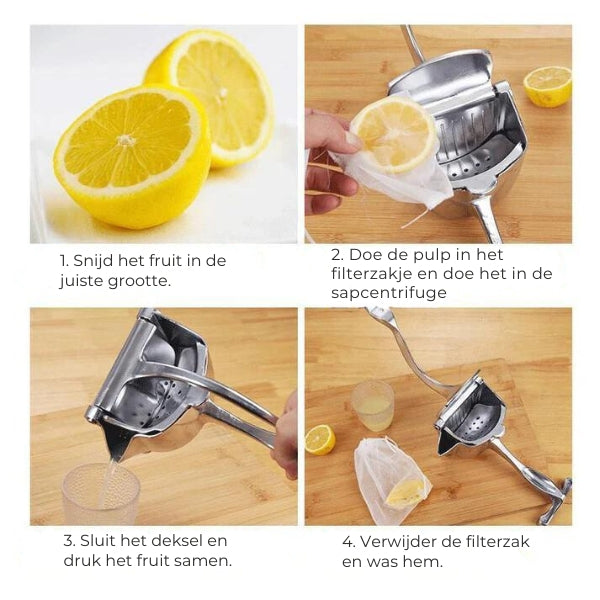 Deze makkelijke fruitpers biedt je de originele en gezonde manier om sap te persen.