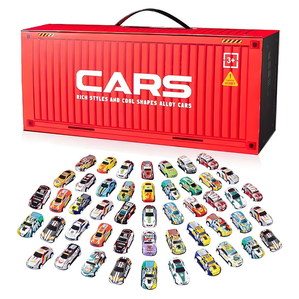 - De verpakking bevat: 1* 48 mini-autootjes met ingebouwde garage en terugtrekmechanisme.