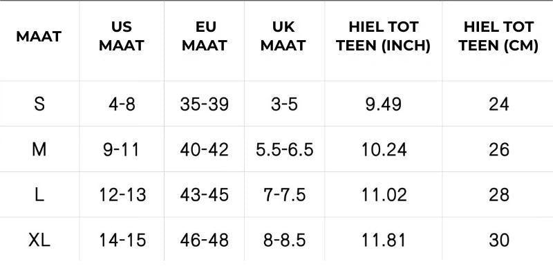 Deze sokken zijn beschikbaar in verschillende maten (S, M, L, XL) zodat ze goed omsluiten zonder te knellen. Elastisch materiaal zorgt ervoor dat de sokken zich vormen naar je voet en kuit, maar toch stevig blijven zitten.