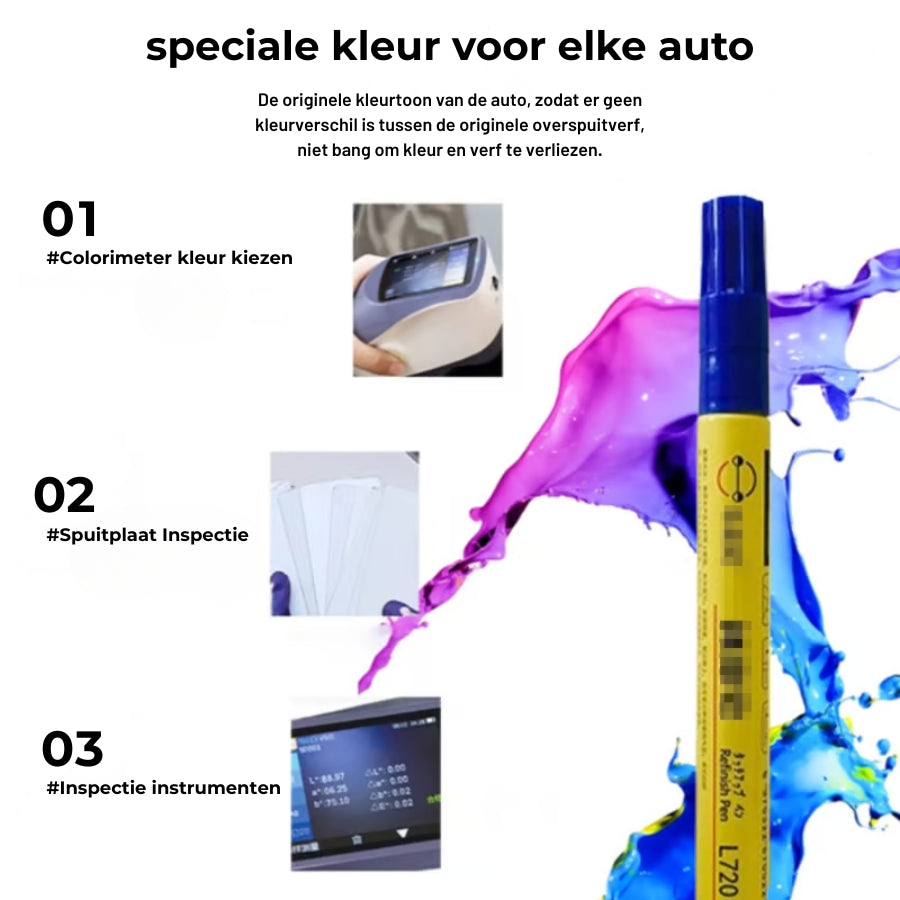 【MOEITELOZE KRASREPARATIE】Zeg vaarwel tegen lelijke autokrassen met onze efficiënte autolakstift. Of het nu gaat om een klein onbeschilderd plekje of een opvallende lakschilfer, onze oplossing sluit naadloos aan op de originele lak van je auto en elimineert kleurverschillen onder natuurlijk licht;