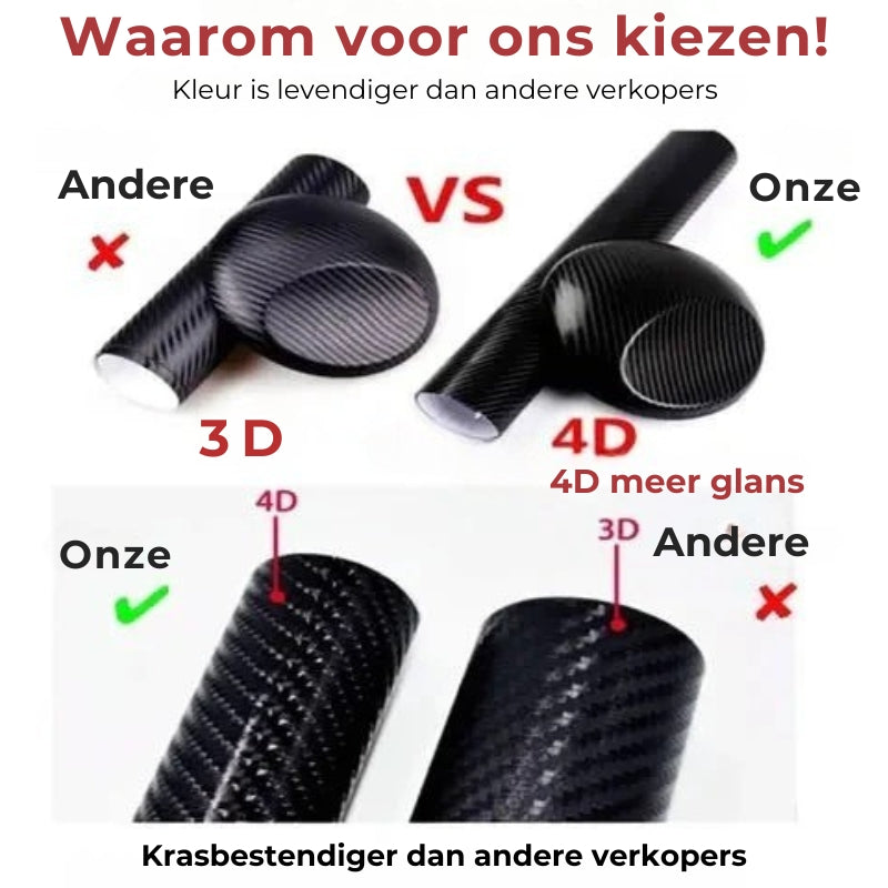 ✔️ Hoogwaardig Materiaal – Gemaakt van 4D carbon fiber zwarte vinylfolie, waterdicht, hittebestendig en duurzaam. Getest onder extreme temperaturen en regen zonder te smelten of te scheuren.