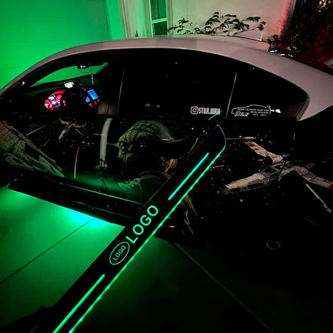- Verlicht je weg telkens als je in of uit je auto stapt! Een van de makkelijkste manieren om je auto te personaliseren is met deze geweldige set verlichte instaplijsten. In slechts een paar seconden, zonder bedrading of schroeven, heb je verlichting die je auto een luxe uitstraling geven.
