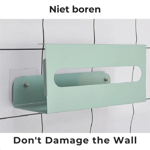 Gemaakt van roestvrij staal, ABS, PVC en niet-strepende lijm. Wordt niet aangetast door vocht in de badkamer. Het oppervlak moet wel glad en voldoende stevig zijn.