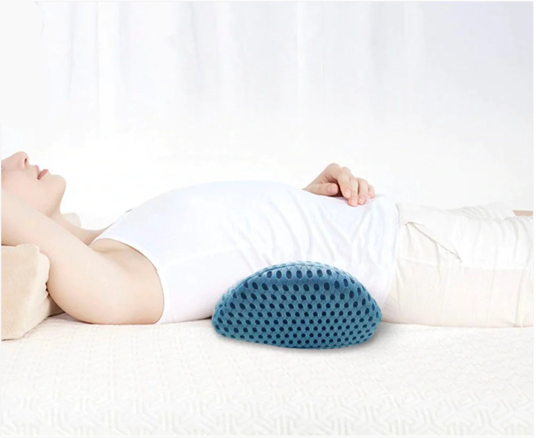 Voor het zitten op kantoor of in de auto, plaats je het kussen op de rugleuning van de stoel, terwijl je ervoor zorgt dat het de lumbale opening tussen je wervelkolom en de stoel opvult. Voor het slapen hoef je het kussen alleen maar onder het lendegebied van je rug te plaatsen.