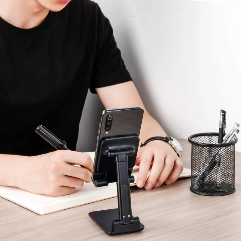 Met deze opvouwbare telefoonhouder zet je je smartphone stevig neer, zodat je hem kunt gebruiken zonder vast te houden. Ideaal voor videoconferenties, online lessen, films kijken of recepten volgen in de keuken – je handen zijn vrij, je telefoon staat stabiel.