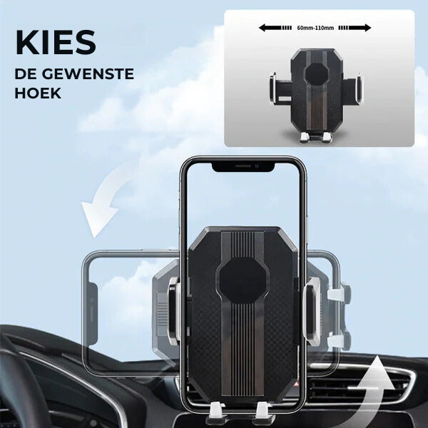 Deze autohouder voor mobiele telefoons heeft een zeer flexibele 360° kogelgewricht dat oneindige kijkhoeken biedt. Plaats je telefoon in de perfecte hoek voor een meer ontspannen en veiligere rijervaring.