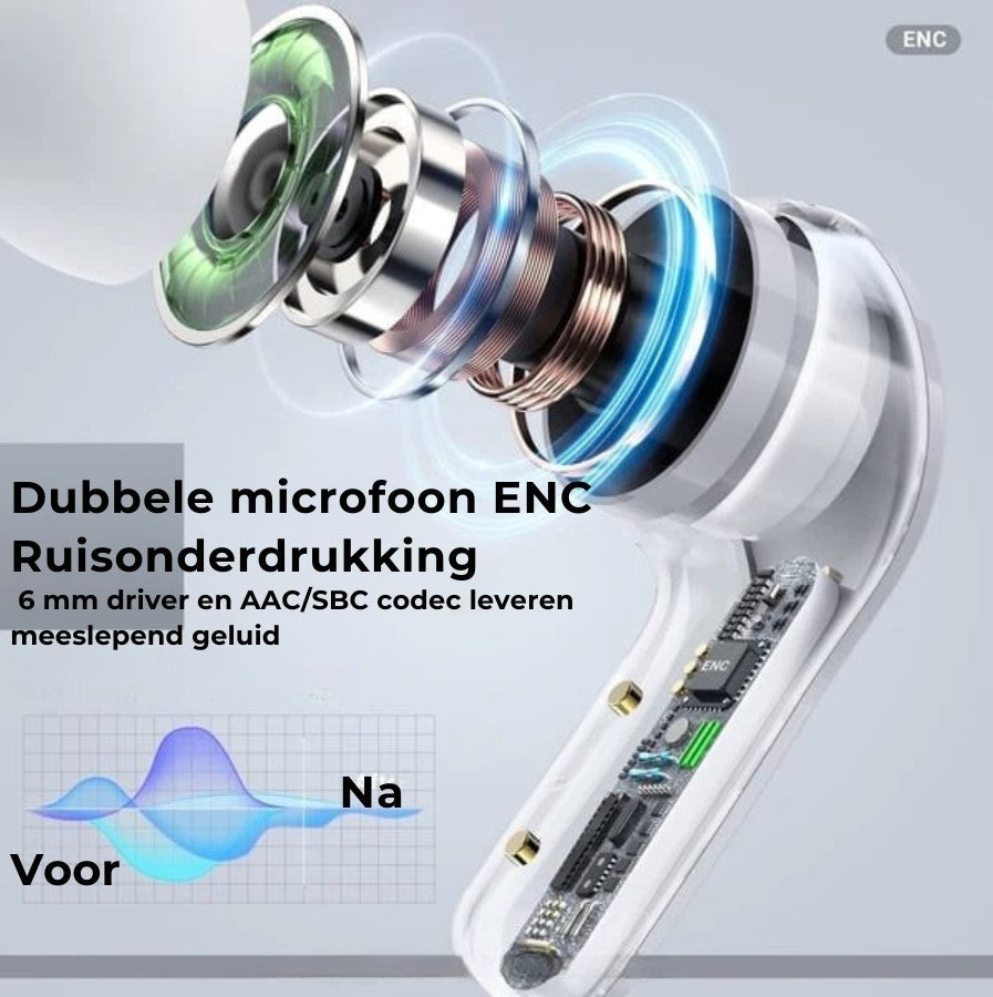 De ruisonderdrukking zorgt voor een helder HQ geluid en zorgt ervoor dat geluid van buitenaf goed onderdrukt wordt.