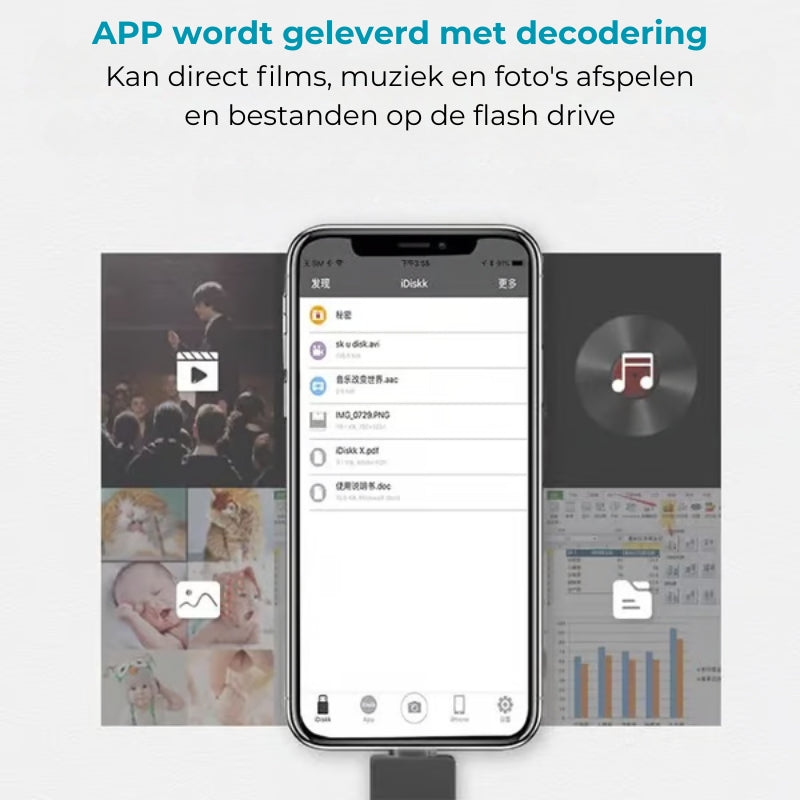 Geen gedoe meer met kabels, e-mails of ingewikkelde apps. Deze universele opslag flashdrive maakt het eenvoudig om bestanden, foto’s en video’s over te zetten of op te slaan – vanaf bijna elk toestel. Ideaal voor wie graag overzicht houdt en zijn bestanden veilig bij de hand wil hebben.