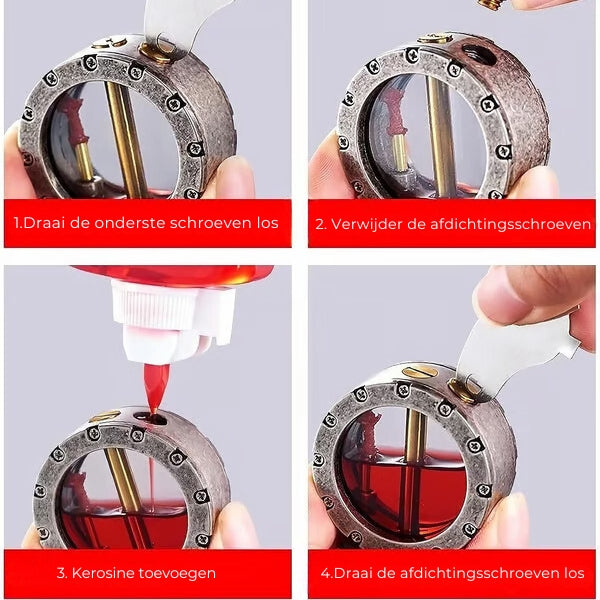 1. Vintage Loopgraaf Aansteker met volledig ingesloten transparante olie silo, olie lekt niet, duurzaam gebruik