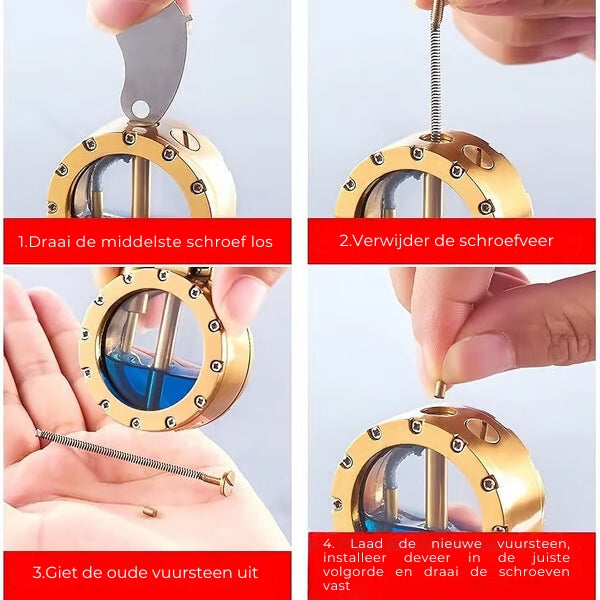 - đ„ăNavulbaar OntwerpăZichtbaar doorzichtig tankontwerp, altijd inzicht in de brandstofcapaciteit om altijd zeker te zijn dat je aansteker nog genoeg vloeistof heeft. De onderkant van de aansteker heeft een olievuller, die kan worden gedraaid om te openen en opnieuw te vullen met aanstekervloeistof/brandstof. Met rubberen kussen aan de onderkant van het deksel, waardoor lekken effectief worden voorkomen.